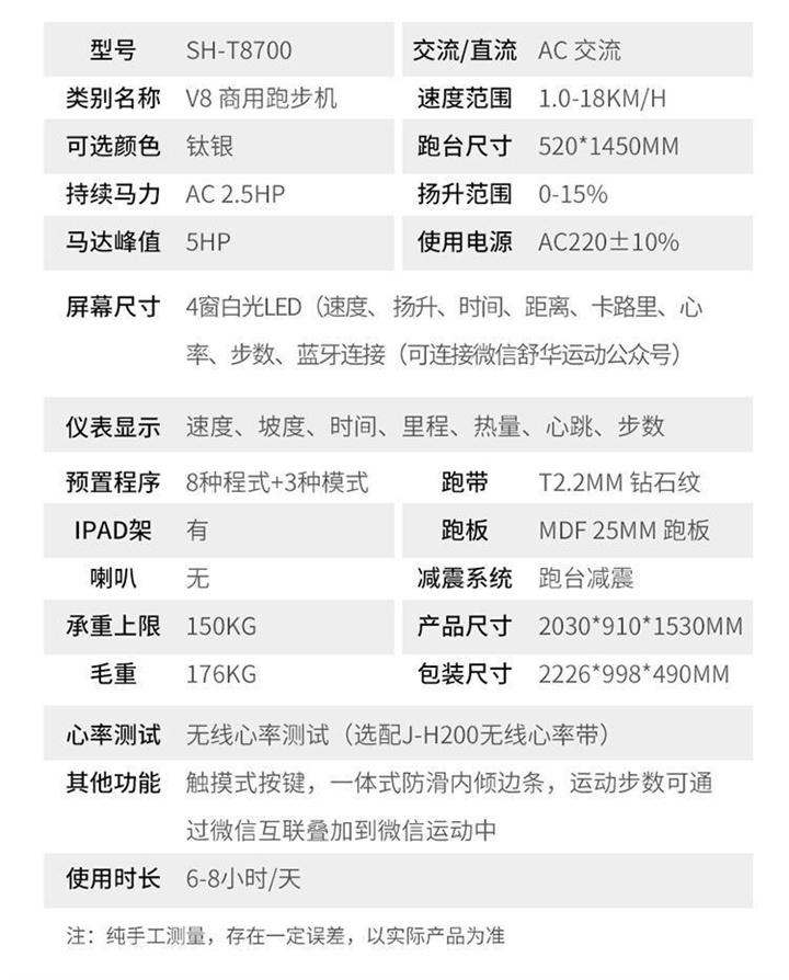舒華商用跑步機(jī)SH-T8700(Sv8)室內(nèi)健身房健身器材
