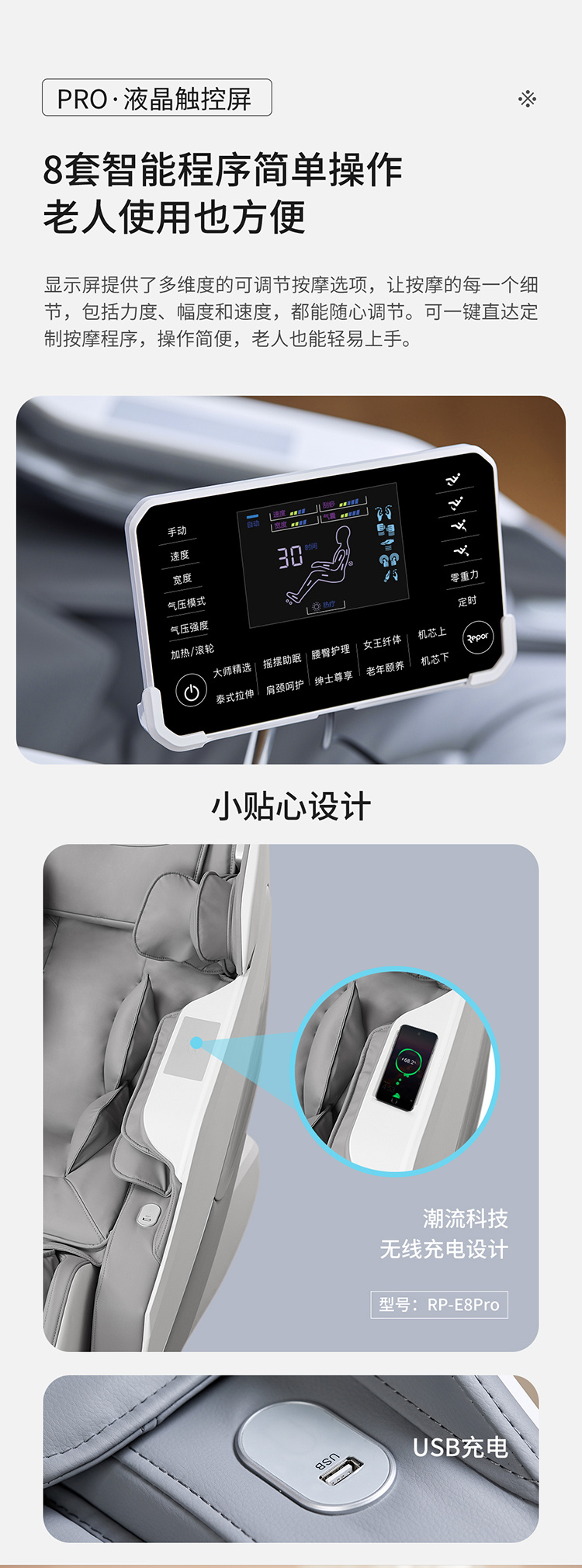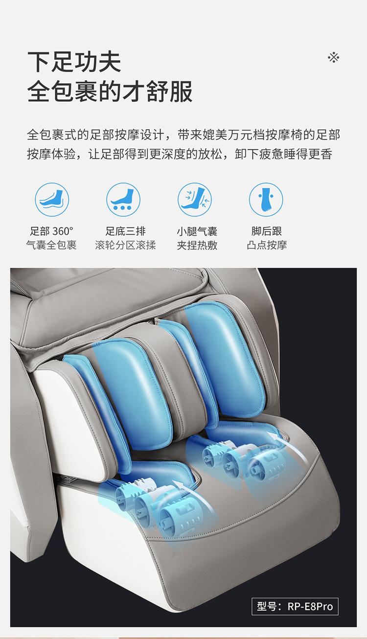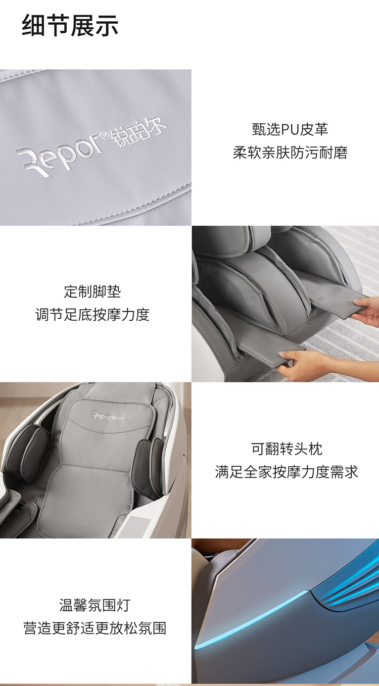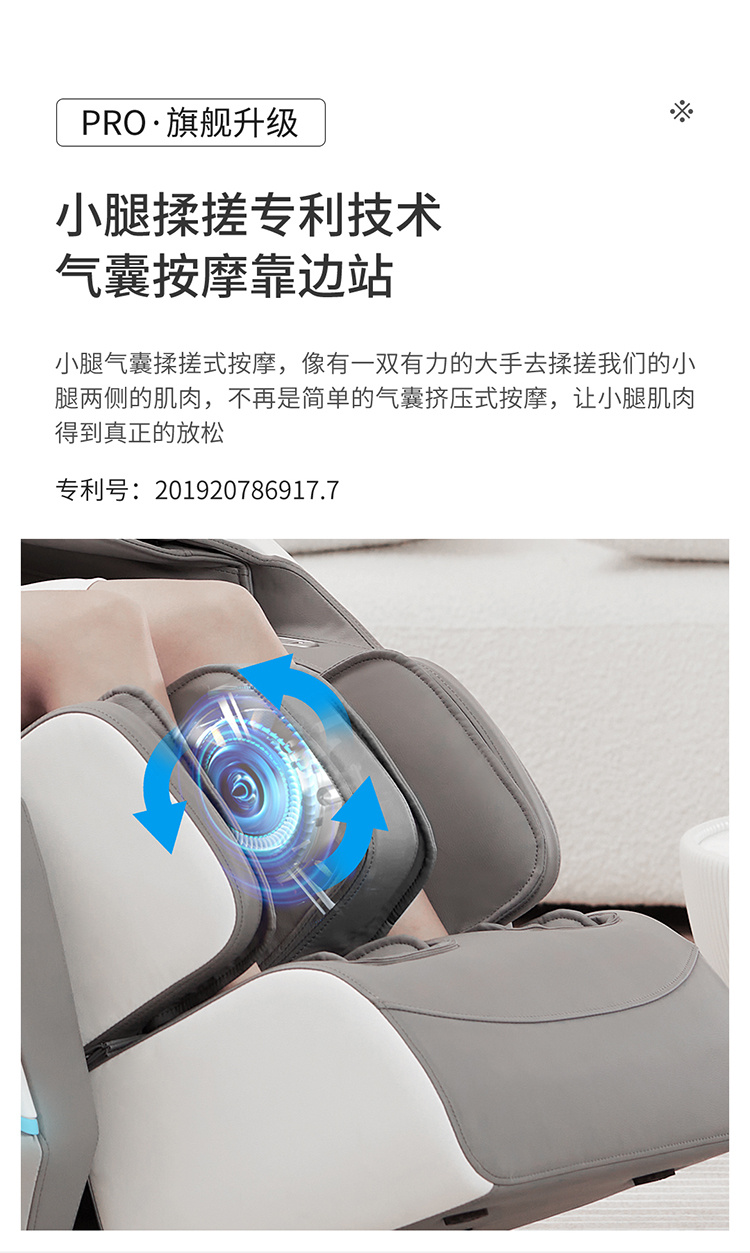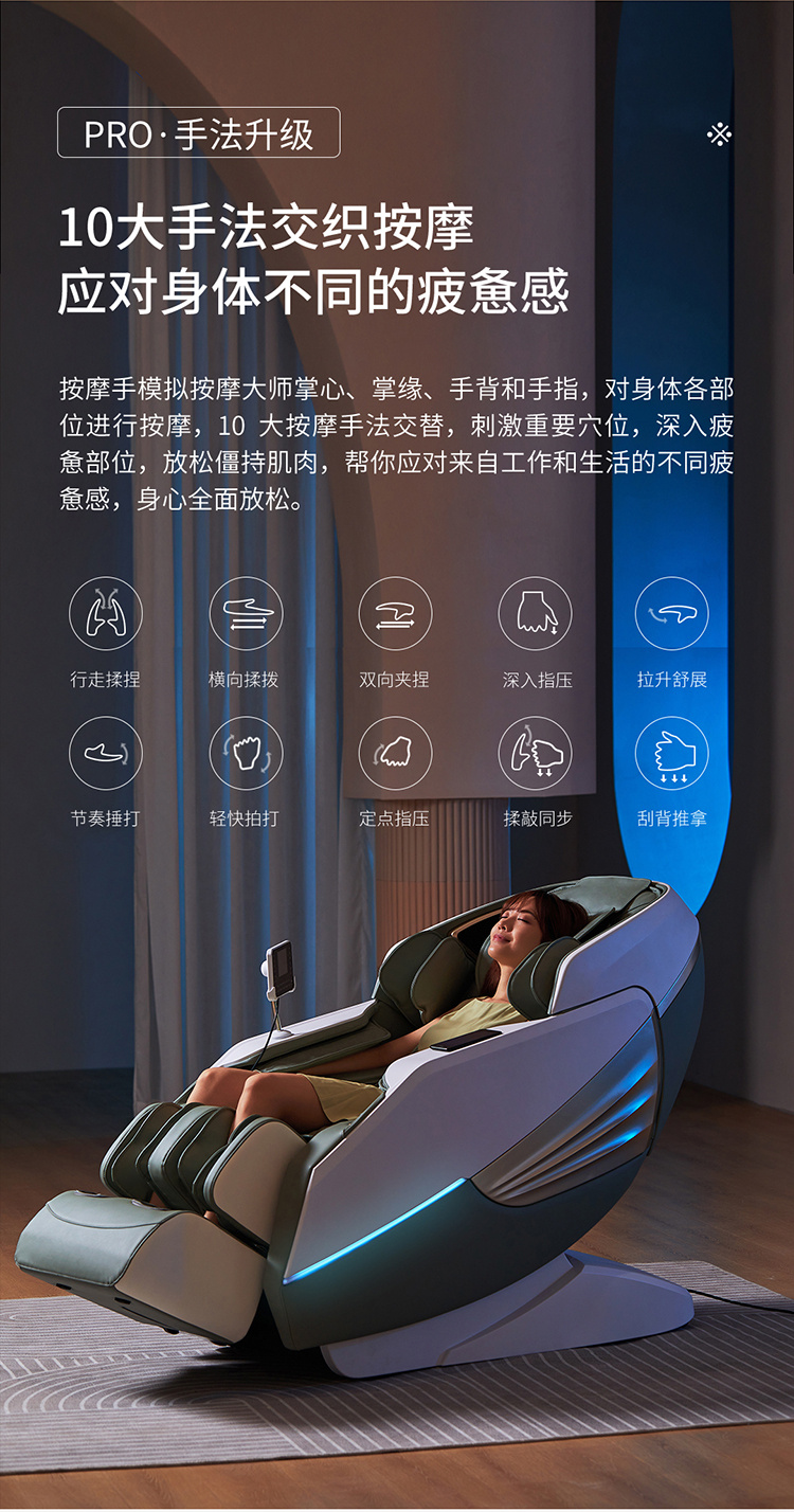 銳珀?duì)柤嗄昙夹g(shù)積累,傾力打造銳珀?duì)栃驴畎茨σ?D穴感總裁椅,擁有全新的AI智能語音,小腿溫?zé)崛啻?、腳底震動(dòng)、4D機(jī)械手等全新功能創(chuàng)新,智能健康體測(cè),可以檢測(cè)血氧、心率、微循環(huán)等數(shù)值,通過大數(shù)據(jù)分析,給您提供合理的改善方法,時(shí)刻關(guān)注您的健康狀況;超大液晶智能觸控,專為總裁量身打造的特色按摩程序,20分鐘快速補(bǔ)充精力,多種按摩程序,滿足全家人的需求。